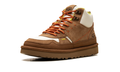For a blend of boot ruggedness and cozy UGG style, check out the UGG Highland Hi Heritage for women in "Chestnut." This high-top model is designed with the rich, classic Chestnut colorway, offering a heritage look. It features a boot silhouette, likely crafted with a premium suede upper and signature UGG lining for comfort and warmth, making it a perfect functional and fashionable choice.