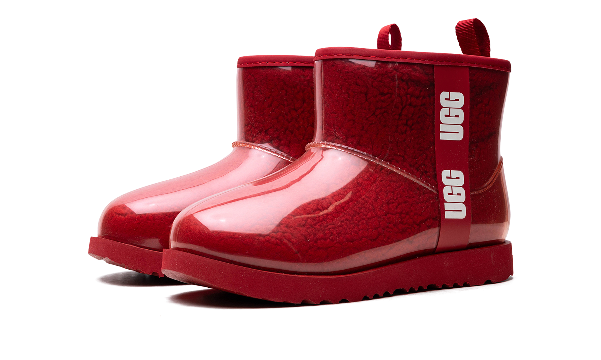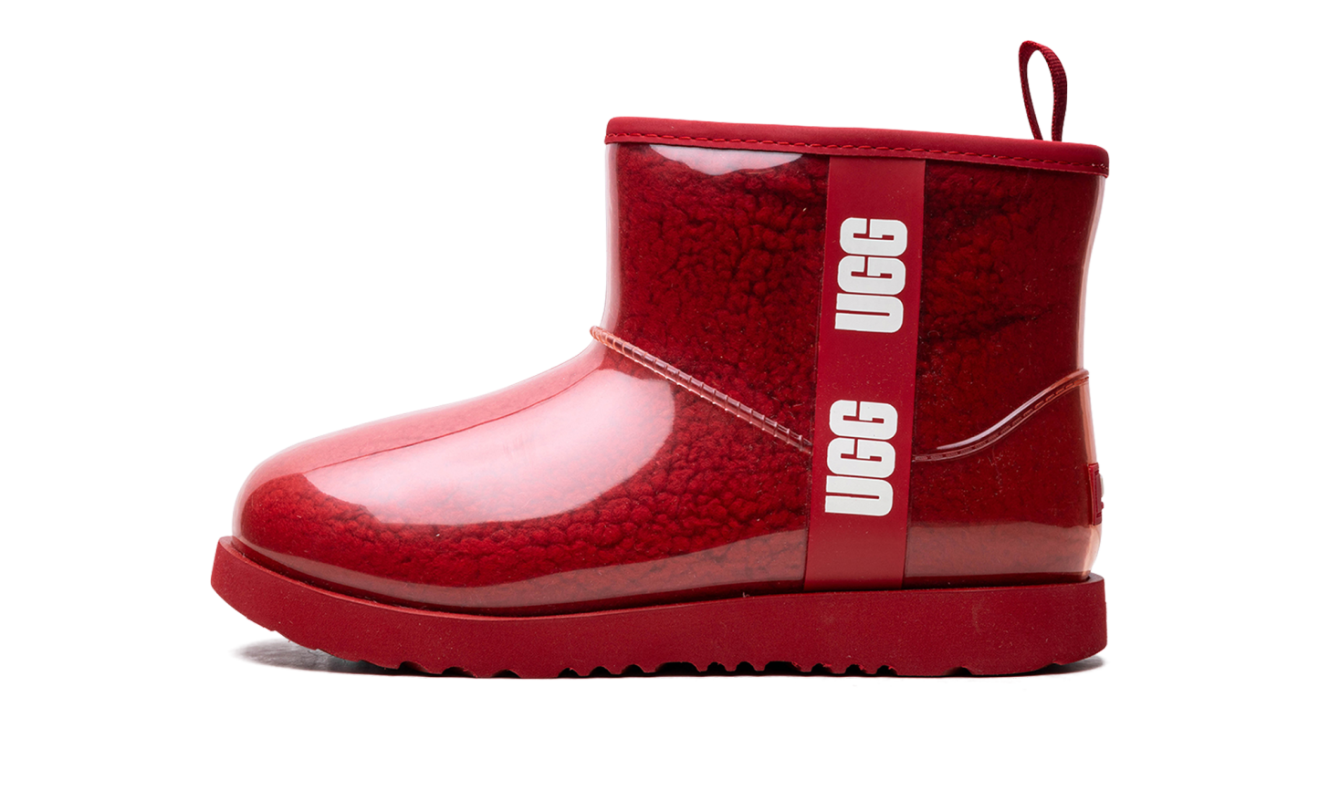 Make a playful splash with the UGG Kids Classic Clear Mini "Red," the undeniable 'Rainy-Day Pop!' This boot gives kids the best of both worlds: a clear, waterproof TPU outer shell that showcases the cozy curly faux shearling and UGGplush™ lining inside. It's built to withstand heavy rain and snow, rated for temperatures as low as -20°C (-4°F). Lightweight and equipped with a durable Treadlite by UGG™ outsole, this bright red boot delivers cozy warmth and traction for every puddle-jumping session!