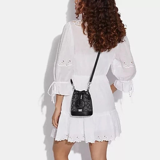 Mini Dempsey Bucket Bag In Signature Jacquard With Stripe And Patch