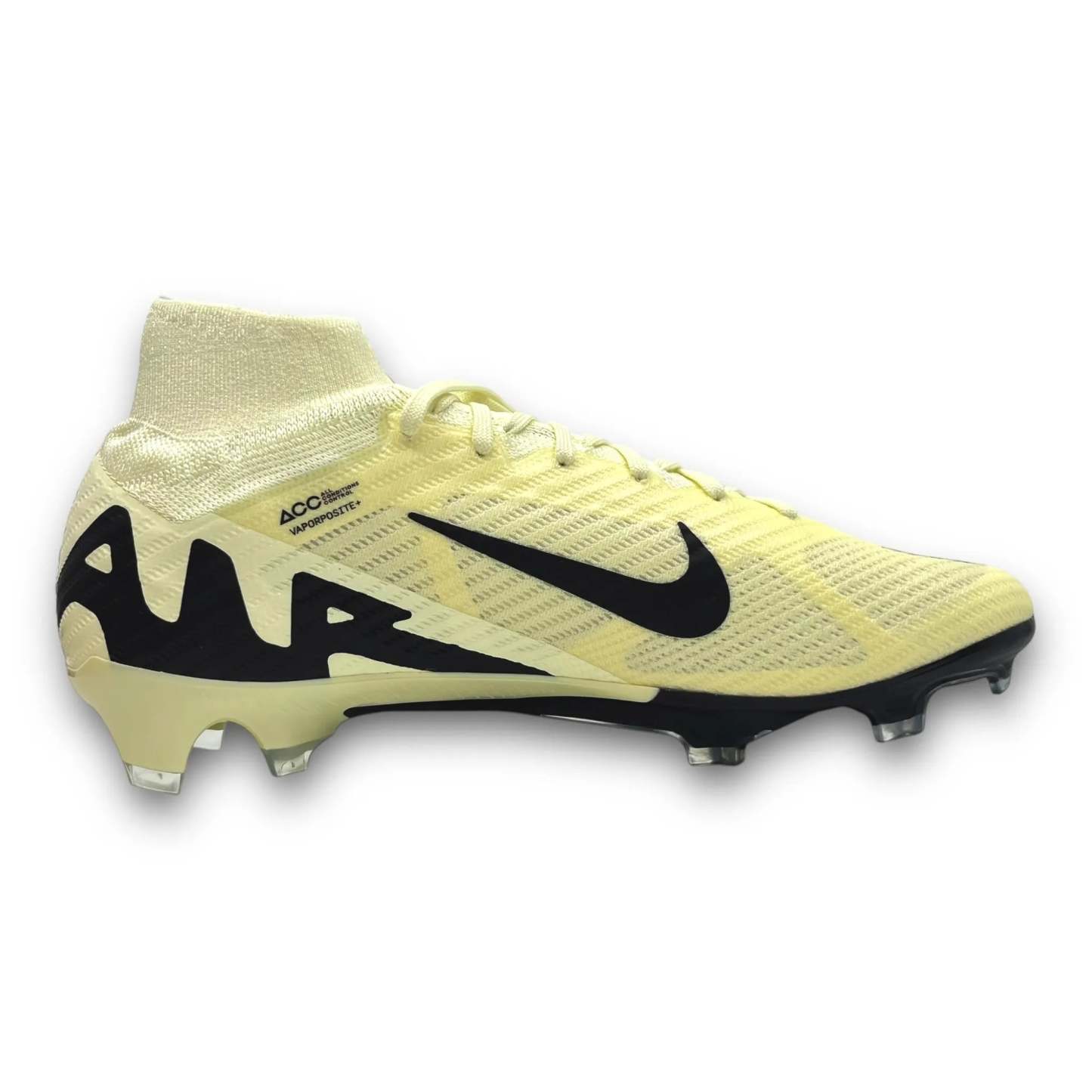 The Nike Mercurial Air Zoom 9 football boot redefines the meaning of "speed" in the world of football. Nike has developed a 3/4-length Zoom Air unit in the midsole that delivers enhanced power and responsiveness, propelling you to the finish line. A revolutionary Vaporposite+ upper combines a grippy mesh with a premium material, providing a unique fit and optimal ball control. An innovative Tri-Star stud system offers exceptional traction on the pitch during acceleration and quick changes of direction. Finally, the reinforced Dynamic Fit high-cut sock provides optimal ankle and foot support.