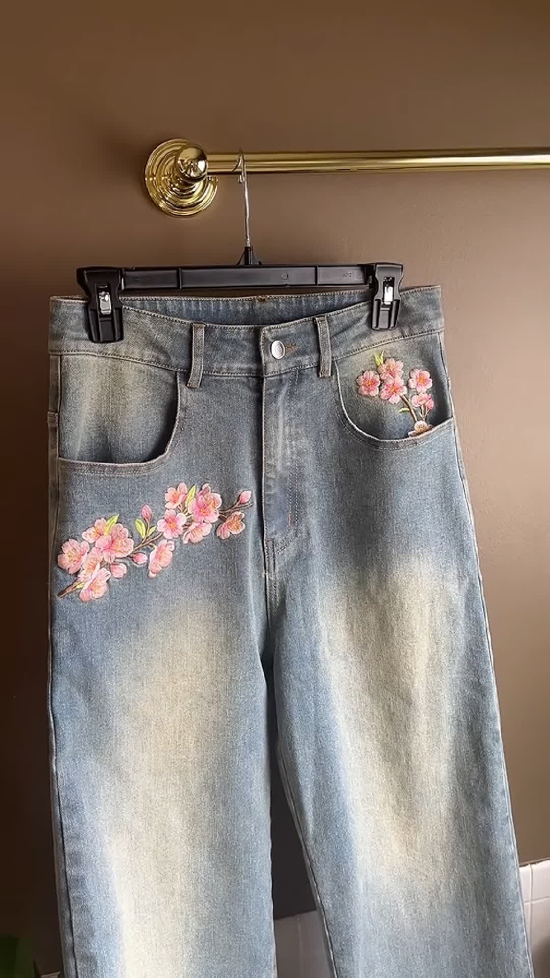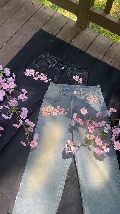 Step into a world of elegance with our floral-embroidered jeans. These beautifully crafted pieces blend classic denim with delicate cherry blossom designs, bringing a touch of nature to your wardrobe. Perfect for any season, they offer both comfort and style, ensuring you stand out with grace and charm wherever you go. Embrace the beauty of nature with every step. 🌸✨