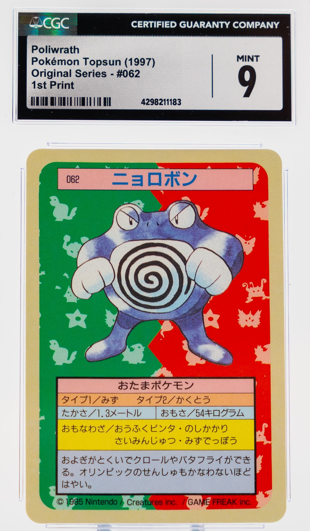 Poliwrath 062 Topsun 1st Print Blue Back - 1997 Pokemon - CGC 9