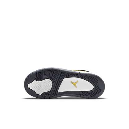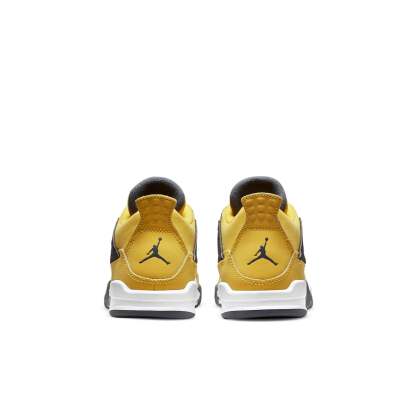 The 2021 reissue of the Air Jordan 4 Retro PS 'Lightning' is a must-have for any sneaker collection. This popular colorway was originally released in 2006 and is now available again for a limited time. The upper is crafted from smooth nubuck in a vibrant yellow hue, with signature wings in a dark grey finish. Black accents on the eyelets and netting add contrast, while Jumpman branding completes the look. The mid-top design rides on a white foam midsole and grey rubber outsole, delivering all-day comfort and style.