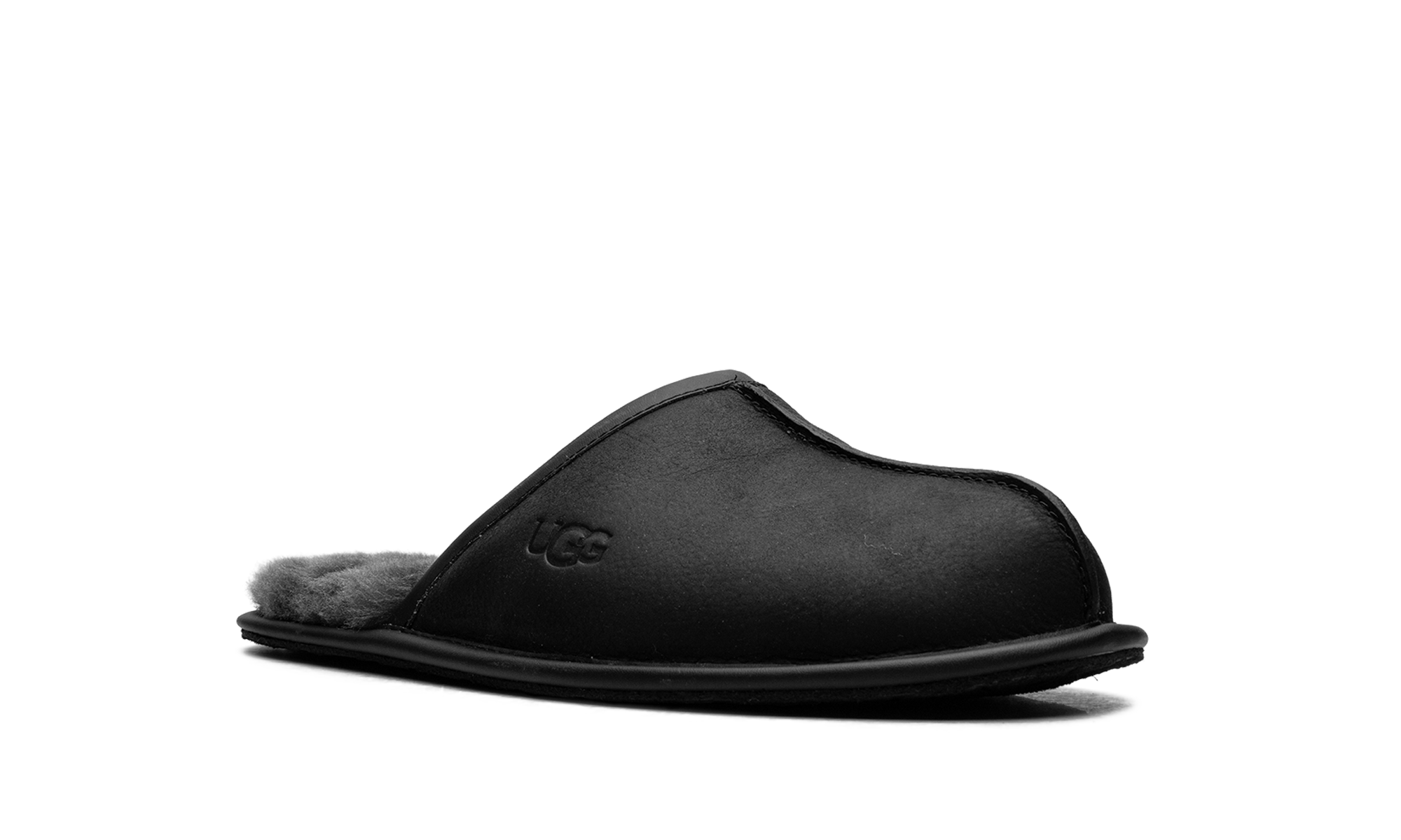 Treat your feet to understated luxury with the UGG Scuff Leather Slipper, a sophisticated choice in "Black." Perfect for padding around the house, this men’s slipper features a premium leather upper that offers a refined look unlike traditional suede. The interior boasts the unparalleled softness of a plush wool lining for warm, cozy comfort. Its easy-on, easy-off silhouette and thin, flexible outsole make it the ideal, polished piece of indoor footwear for weekend relaxation.