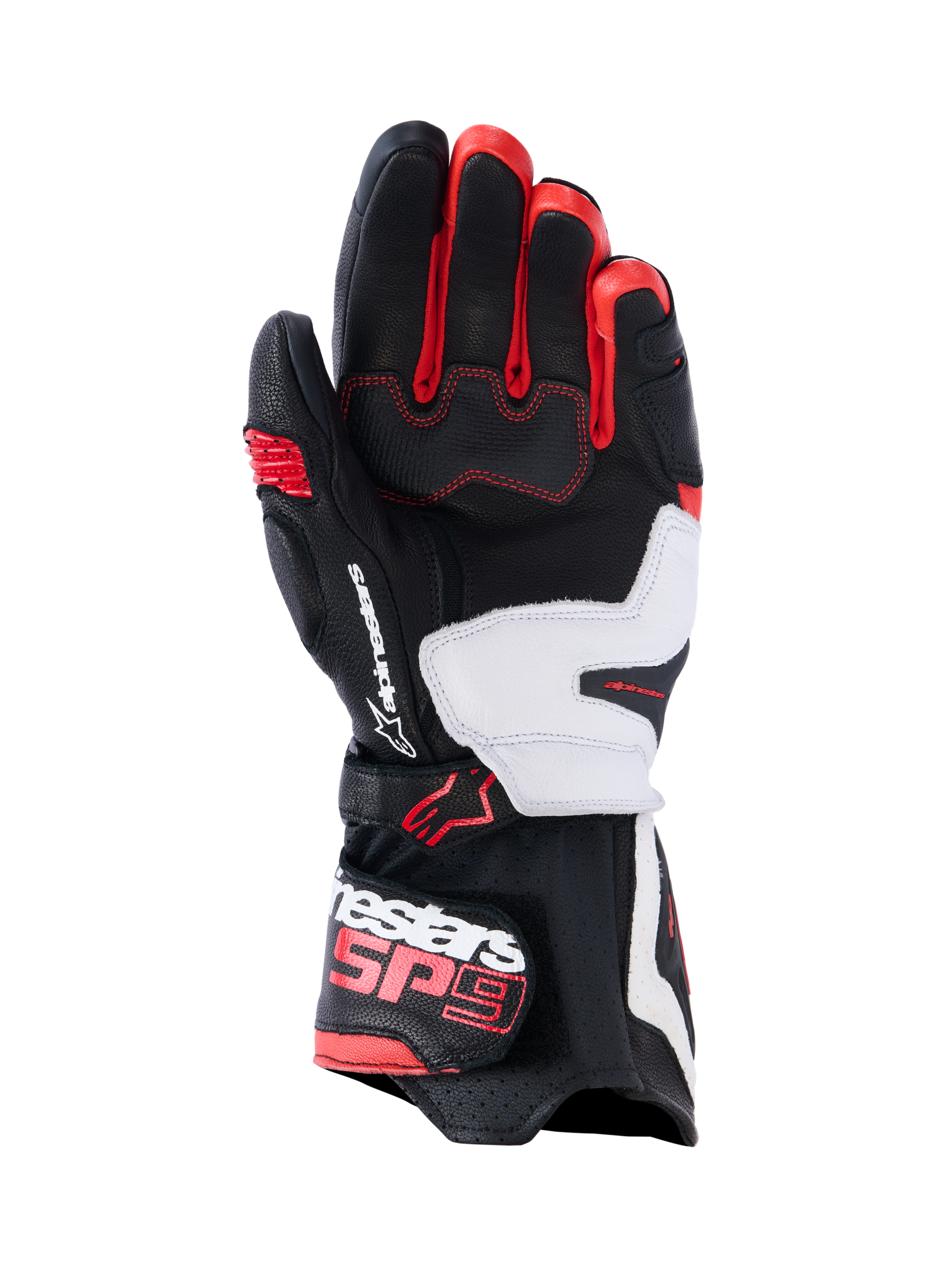 Engineered for racing and sport riders, the SP-9 Gloves combine MotoGP-derived SP-R divided knuckle technology with full grain goat leather construction for maximum protection and versatility. CE Level 1 certified with perforated backhand ventilation, they deliver track-proven safety with optimized flexibility. Pre-shaped finger construction, patented finger bridge, long double closure cuff, and anatomical grip inserts provide precision fit and enhanced control on and off the track.