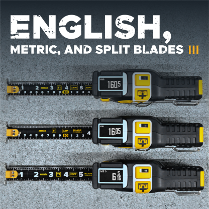 The world's first, professional grade, digital tape measure with 1/32" accuracy, integrated e-ink display for storing 1000+ measurements, and bluetooth connectivity.