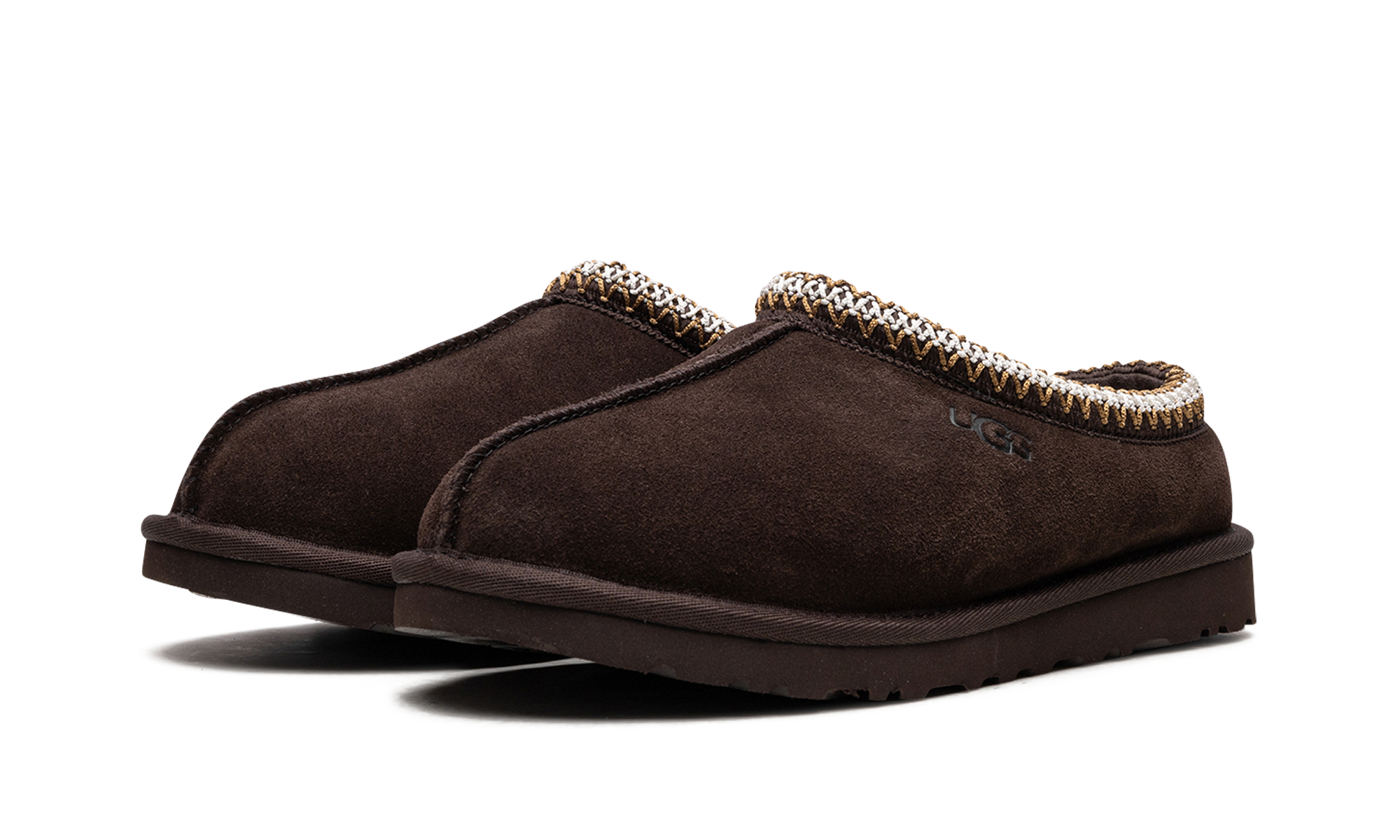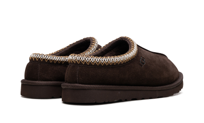 Step into plush luxury with the UGG Tasman "Dusted Cocoa" slipper. This men's moccasin style features a rich, dark brown suede upper, complemented by the signature embroidered Tasman braid around the collar. It offers slipper-like comfort with a warm inner lining of cozy sheepskin and upcycled wool. The durable EVA foam sole provides reliable grip, making this versatile shoe your perfect choice for relaxed, confident style both indoors and out.