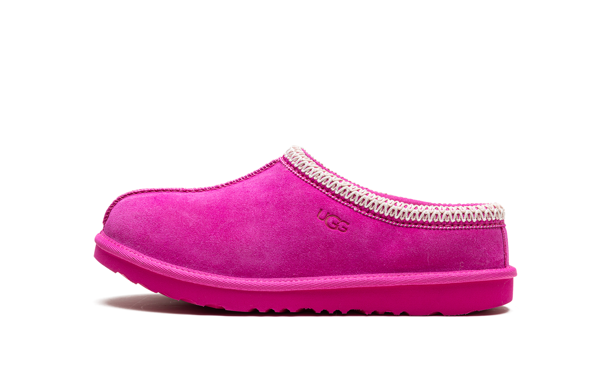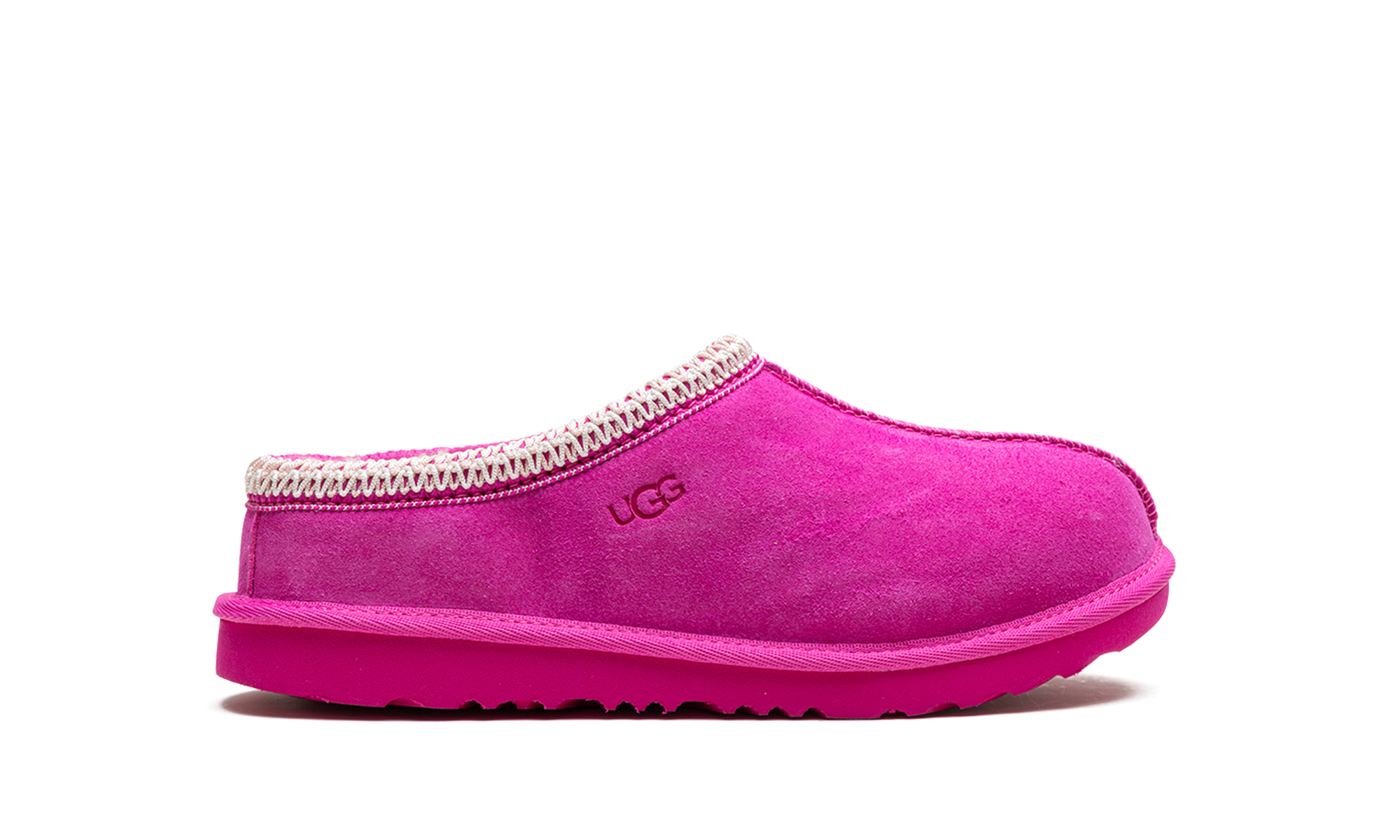 Add a splash of color to cozy days with the UGG Tasman II GS "Rock Rose" slipper. Designed for Grade School kids, this comfortable slip-on features a soft suede upper in a gorgeous Rock Rose hue. Signature UGG comfort comes from the plush UGGpure™ wool lining, ensuring warmth for little feet. Finished with the classic Tasman braid detail and a durable Treadlite by UGG™ outsole, it’s the perfect shoe for cozy and confident indoor or outdoor fun.