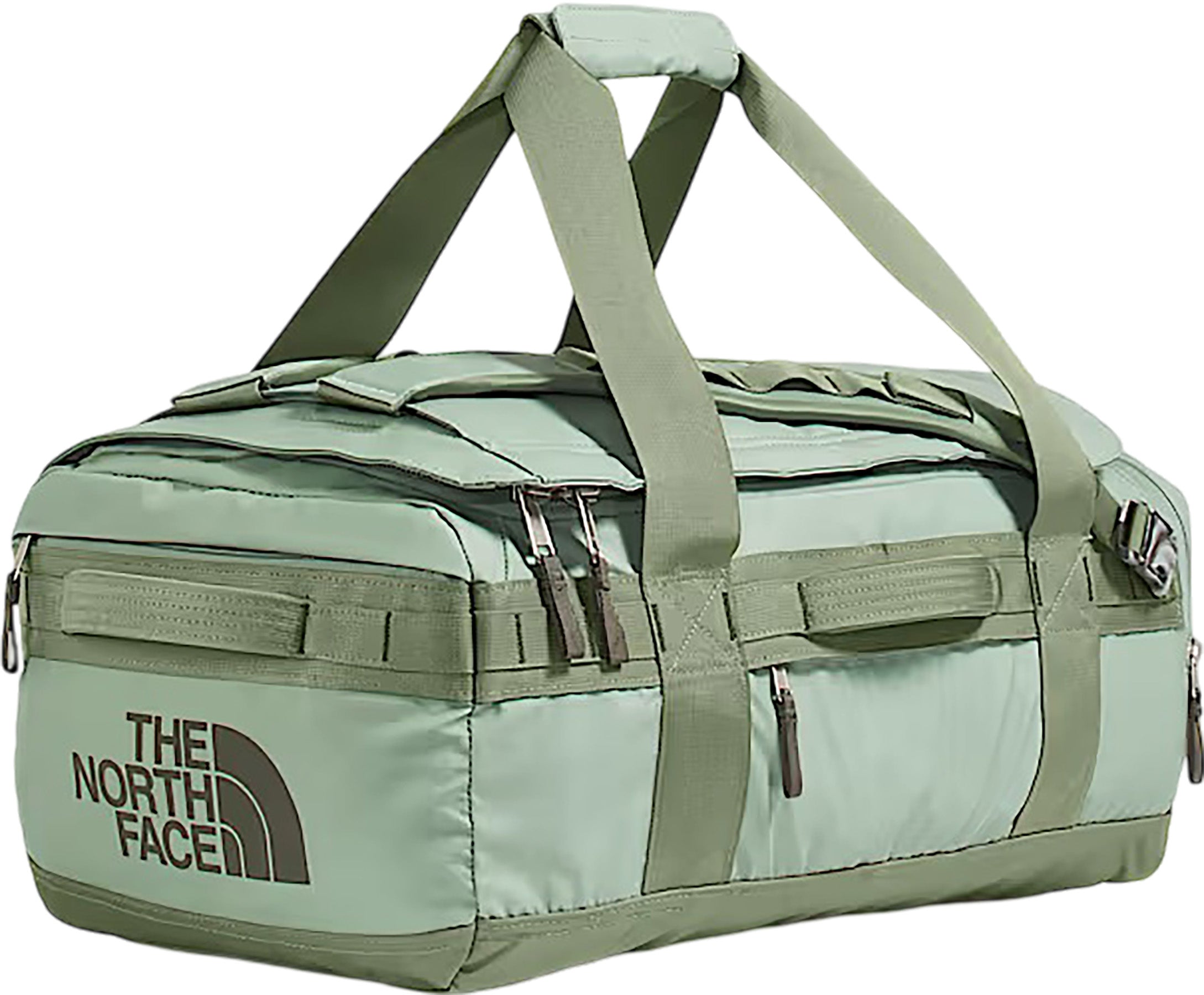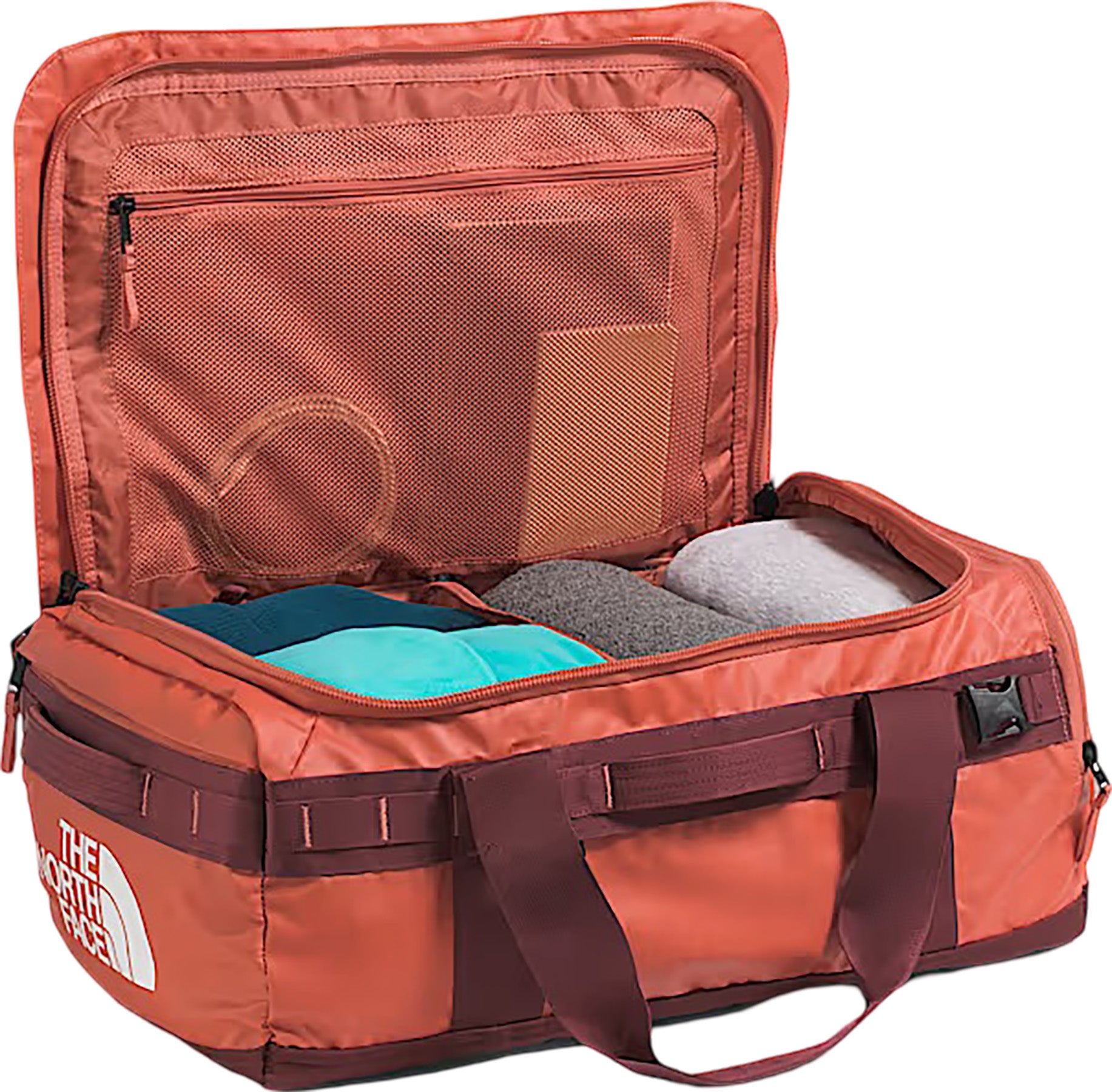 • External webbing offers many lash points.|-|Le sac de sport Base Camp Voyager d’une capacité de 42 litres est une version révolutionnaire de notre sac de sport Base Camp emblématique. Conçu pour les excursions de deux jours, il offre maintenant plus de possibilités de rangement à l’intérieur et comporte un tissu entièrement recyclé au corps, plus léger que l’original, mais tout aussi résistant.