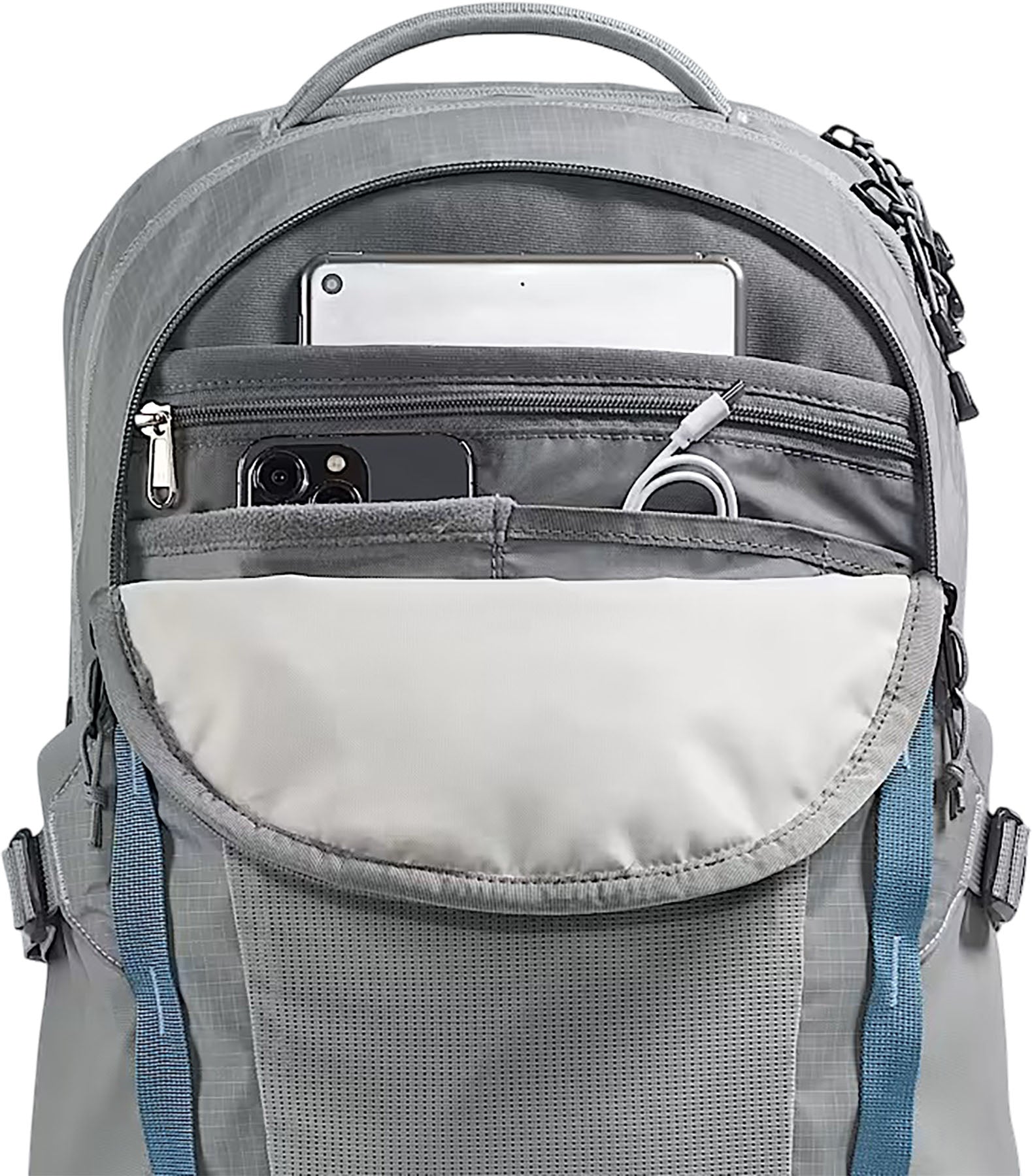 • External, fleece-lined pocket for sunglasses, phone or keys